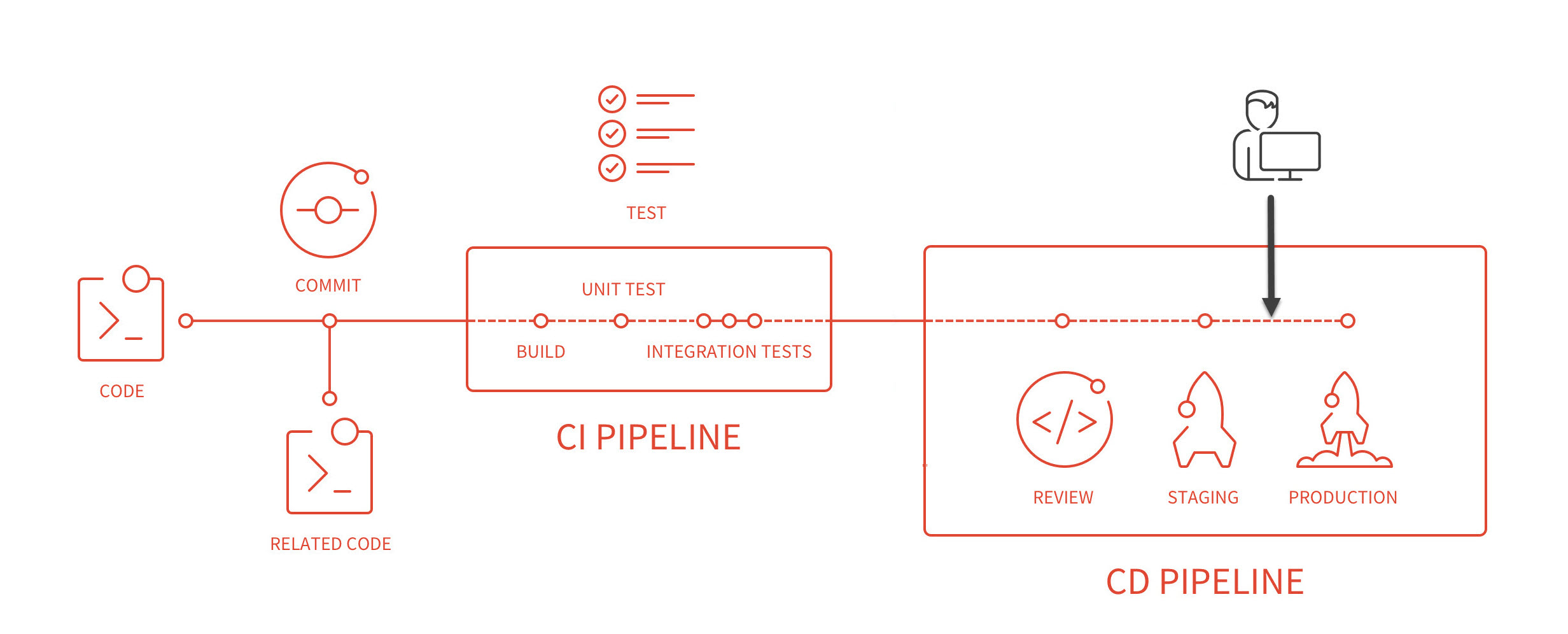 Изначально, до появления методологии CI/CD, развертывание нового кода/приложений на конечных серверах происходило вручную. Были команды программистов. Допустим написали код, закинули на DEV-сервер, протестировали, все у них работает, собрали это в пакет. Загрузили пакет на какой-то NAS-сервер. Допустим где другие люди могут у этот пакет скачать либо перенести на другие сервера. В нашем случае это были админы, они брали этот пакет и загружали это все на STAGING-сервера. Там админы проводили финальные тесты, и если что-то шло не так, то программисты переписывали код, тестировали, собирали пакет, и так до тех пор по кругу, пока админы не были довольны. И только после этого загружали РУЧКАМИ это все в PRODUCTION-сервера, прикручивали мониторинг, всякое такое. Это все длилось очень долго.