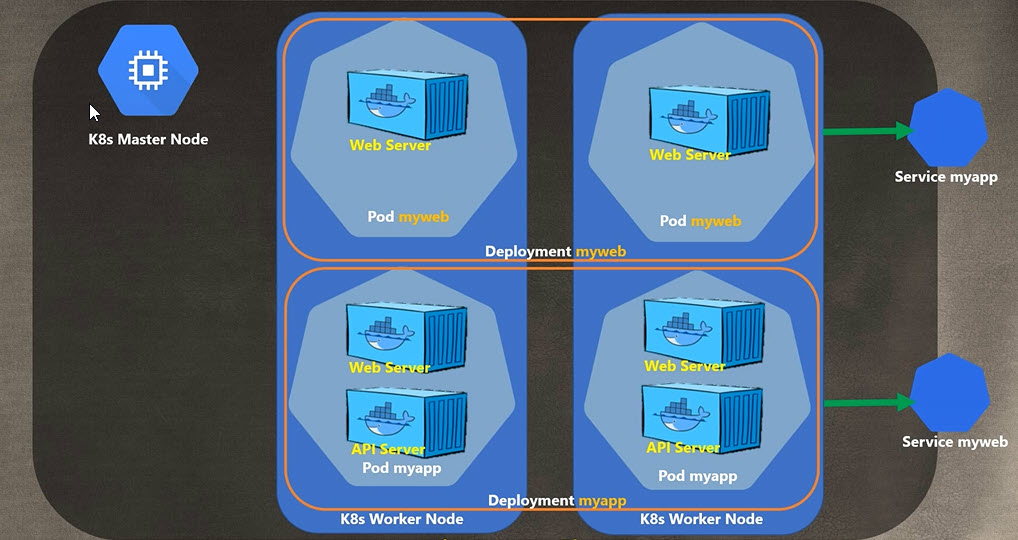 2. Deployment - набор из replicas PODs и нужен для деплоя по Nodes, обновлений Container Image и распределения ресурсов.